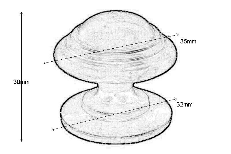 Knop ongelakt messing Ø 35mm H30mm