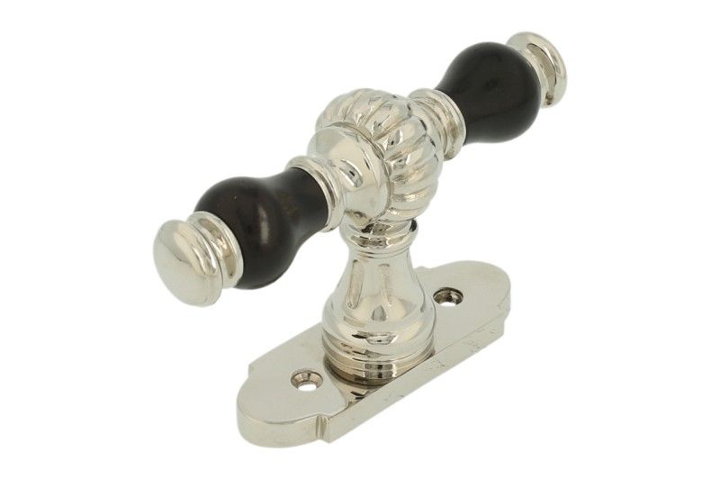 Raamklink kasteel met rozet messing vernikkeld ebbenhout