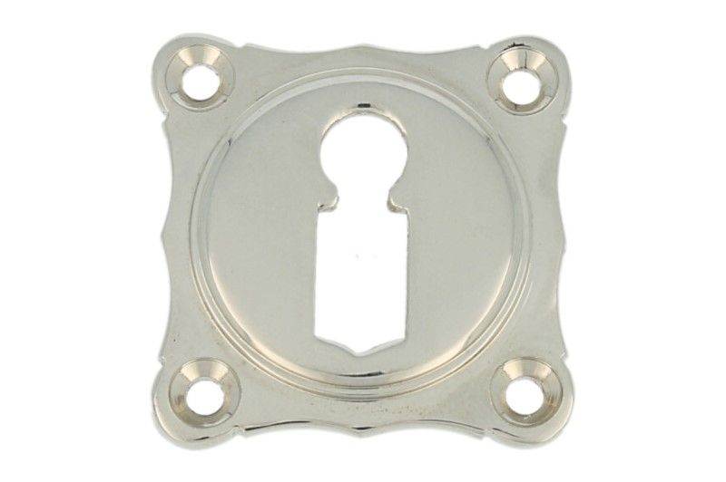Sierlijk sleutelrozet messing vernikkeld. Prijs per stuk